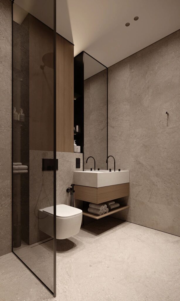 Küçük ya da dar bir banyonun ferah ve zarif bir görüntü kazanmasının en etkili yolu, büyük ebatlı seramikler kullanmaktır. Bu seramikler, banyolarda hem estetik bir duruş hem de optik olarak daha geniş bir görünüm sağlar. Büyük karo ölçüleri, daha az derz çizgisi oluşturur. Derz sayısının azalması ise yüzeyde daha az kesinti olmasını ve bütünlüğün bozulmamasını sağlar. Bu da mekânın göze daha akıcı ve geniş görünmesine katkıda bulunur. Büyük ebatlı seramiklerde yüzey daha homojen görünür. Özellikle açık tonlarla birleştirildiğinde, banyoda sade, şık ve aydınlık bir etki yaratır. Zeminde ve duvarda aynı renkte ve ebatta seramik kullanmak, banyonun sınırlarını daha belirsiz hâle getirir. Bu teknik, küçük metrekareli alanlarda bile daha geniş ve modern bir atmosfer oluşturur.
